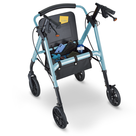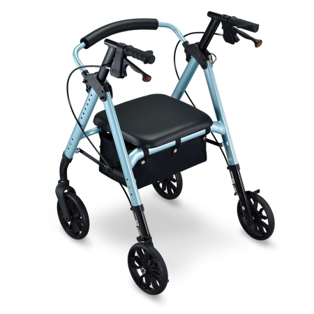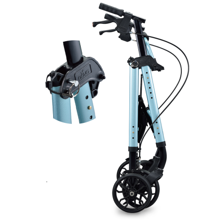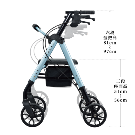 金屬拉桿輕輕一拉,即可完全收合車體,減少 50% 體積 (W62 / D31 / H81 cm)。定位插銷固定收合狀態,使搬運便利流暢。輕巧體積搭配交通運輸載送,解除行動不便的限制,拓展您的移動舒適圈。